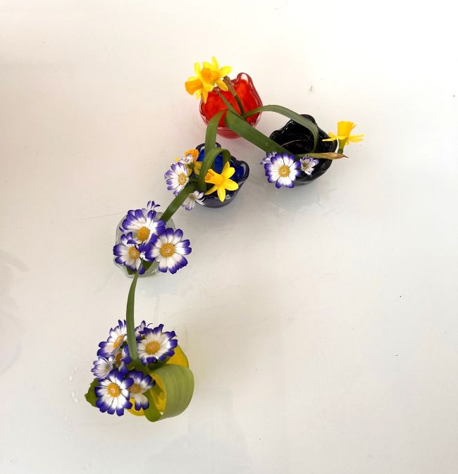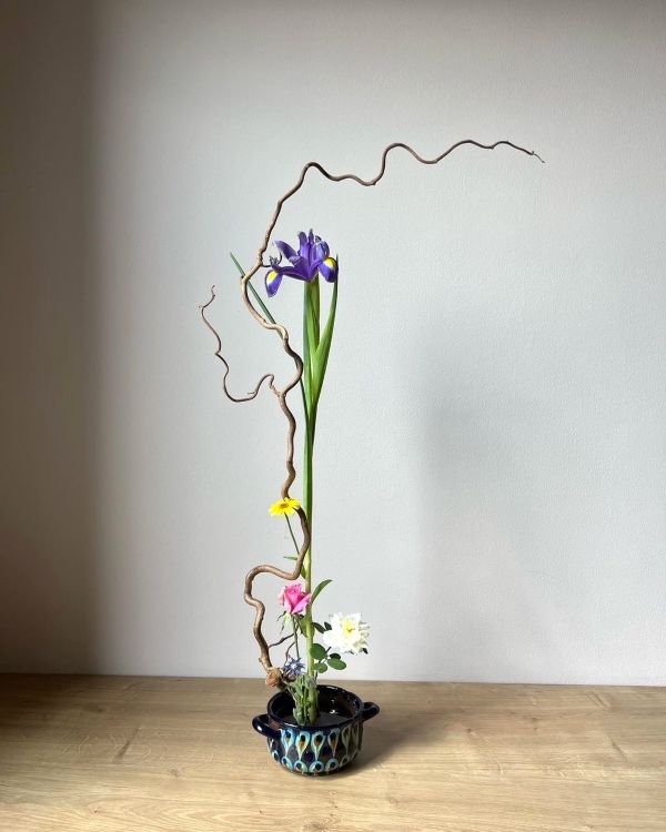 Objavte eleganciu vertikálnej línie v moribane. Vertikálna línia symbolizuje rast, nie len v ikebane, ale aj v osobnom živote. Práca s kenzanom a miskou.