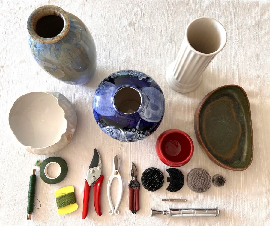 Misky, vázy, kenzany, nožnice a ostatné náradie bude k dispozícii. Na jedno aranžmá vám zabezpečíme kvetinový materiál my. Na druhé aranžmá si môžete priniesť materiál z vlastnej záhrady či lesa na základe inštukcií doručených mailom po zaplatení kurzovného alebo vám ho zabezpečíme my za doplatok 5€.